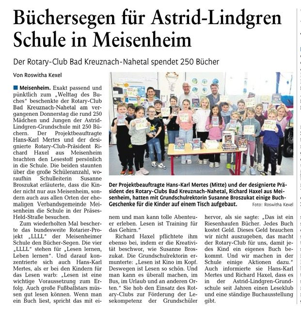 Buchspende des Rotary Clubs an unsere Schüler 2026